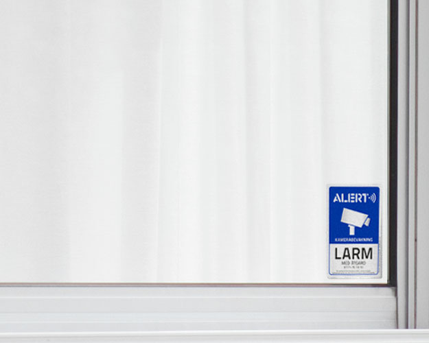 Det första tjuven möter vid en bostad larmad med Alert Alarm är larmskylten eller larmdekalen. Redan där kan tjuven avskräckas och gå vidare till en bostad utan inbrottslarm.